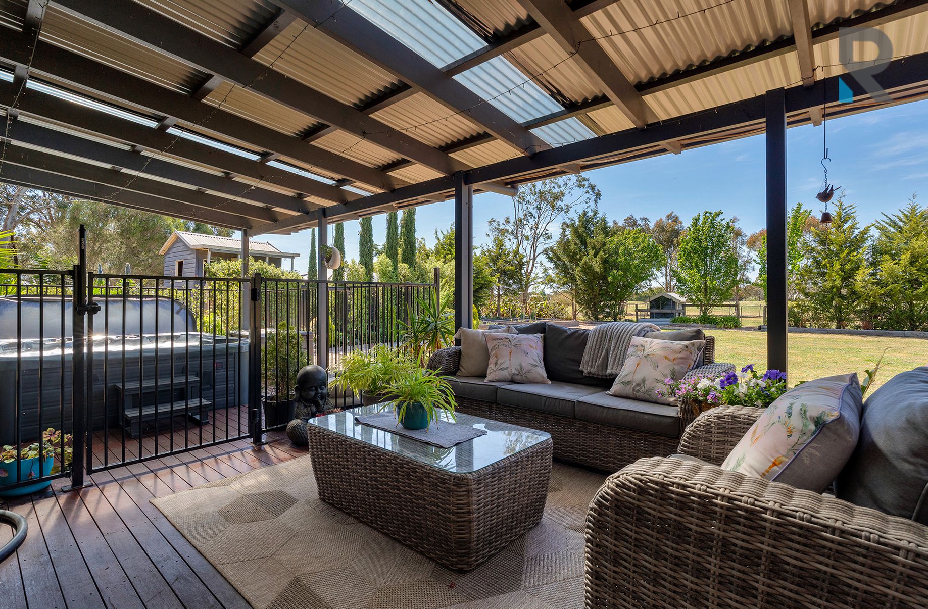 Sliding doors open to a sprawling covered deck overlooking the backyard, the perfect spot for family barbecues, relaxed evenings, or soaking in the outdoor spa. Children will love the open space and cubby house, while the dedicated rear paddock and landscaped garden beds add to the charm of country life.