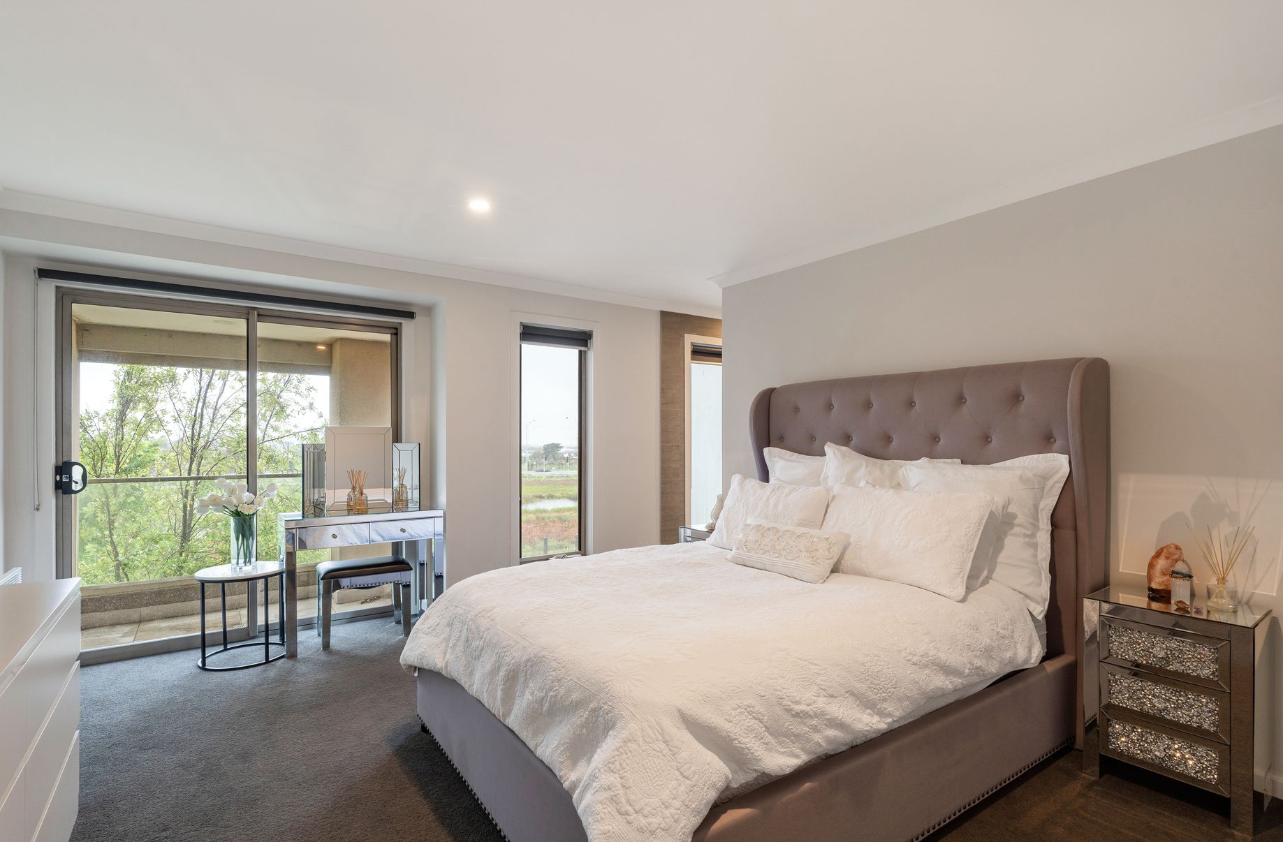 Upstairs, the spacious master bedroom offers a private retreat with a walk-in robe, balcony overlooking reserve and stylish ensuite complete with a large shower. Two additional bedrooms each include split systems for year-round comfort and share a modern bathroom finished with floor-to-ceiling tiles and a bathtub. Added practicality is witnessed with a second living area that provides as the perfect children's retreat or study / home office. A convenient powder room on the ground level and a double lock-up garage with internal access add further appeal. Impeccably maintained, this home showcases floating floorboards, high ceilings and a clean, neutral palette that enhances its sense of space and light.